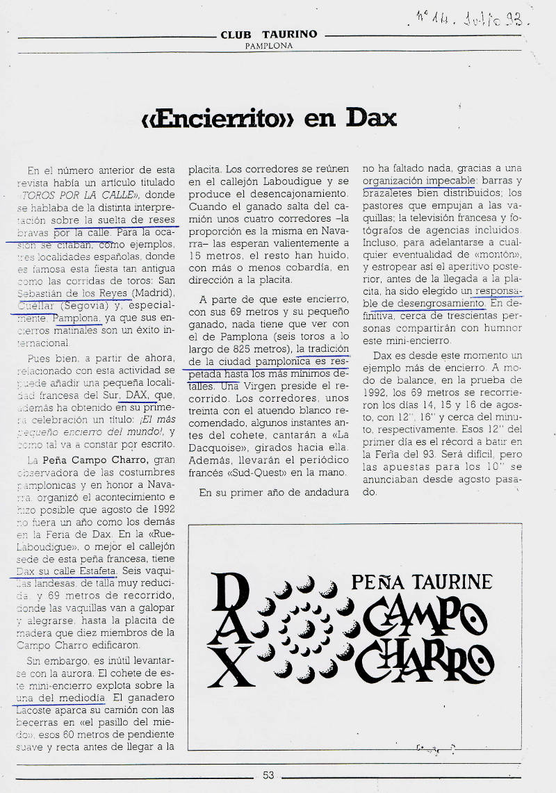 La Peña Taurine Campo Charro de Dax est née officiellement en Janvier 1983.